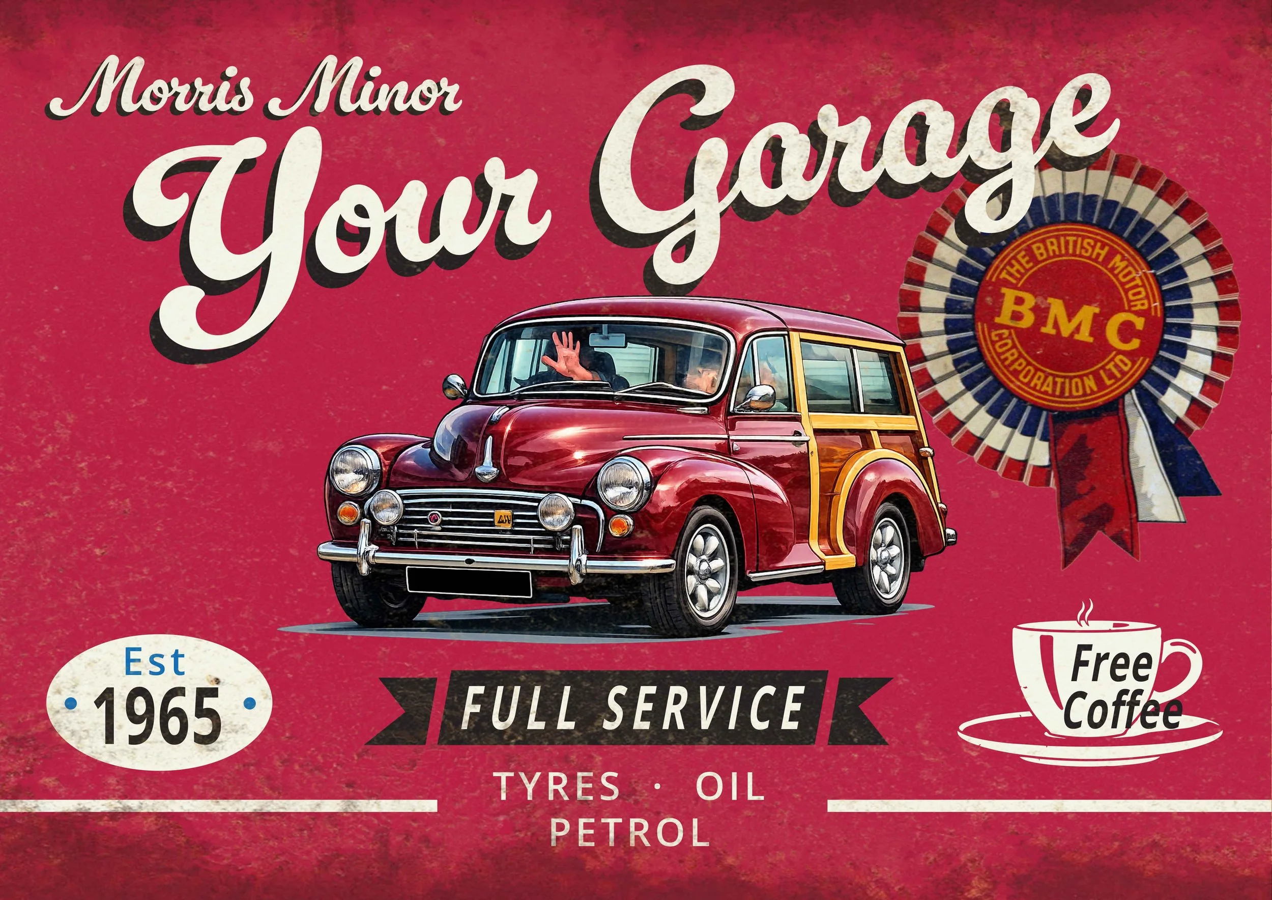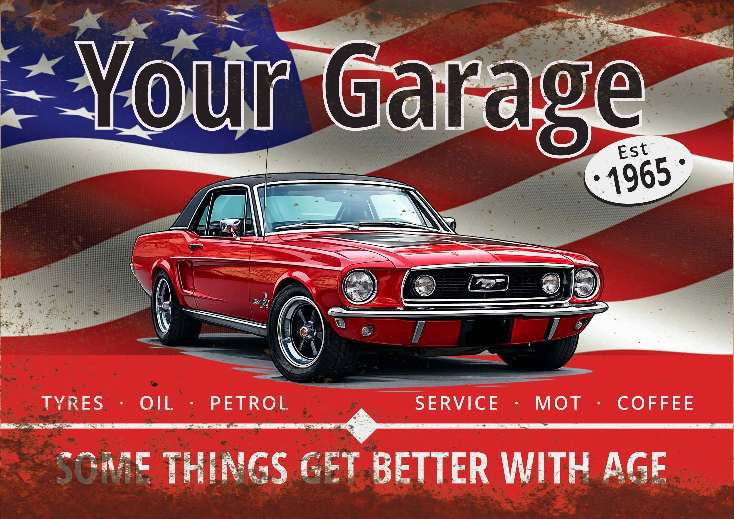 Turn your favourite car photo into a custom classic car garage sign, perfect for your garage, workshop, office or man cave.