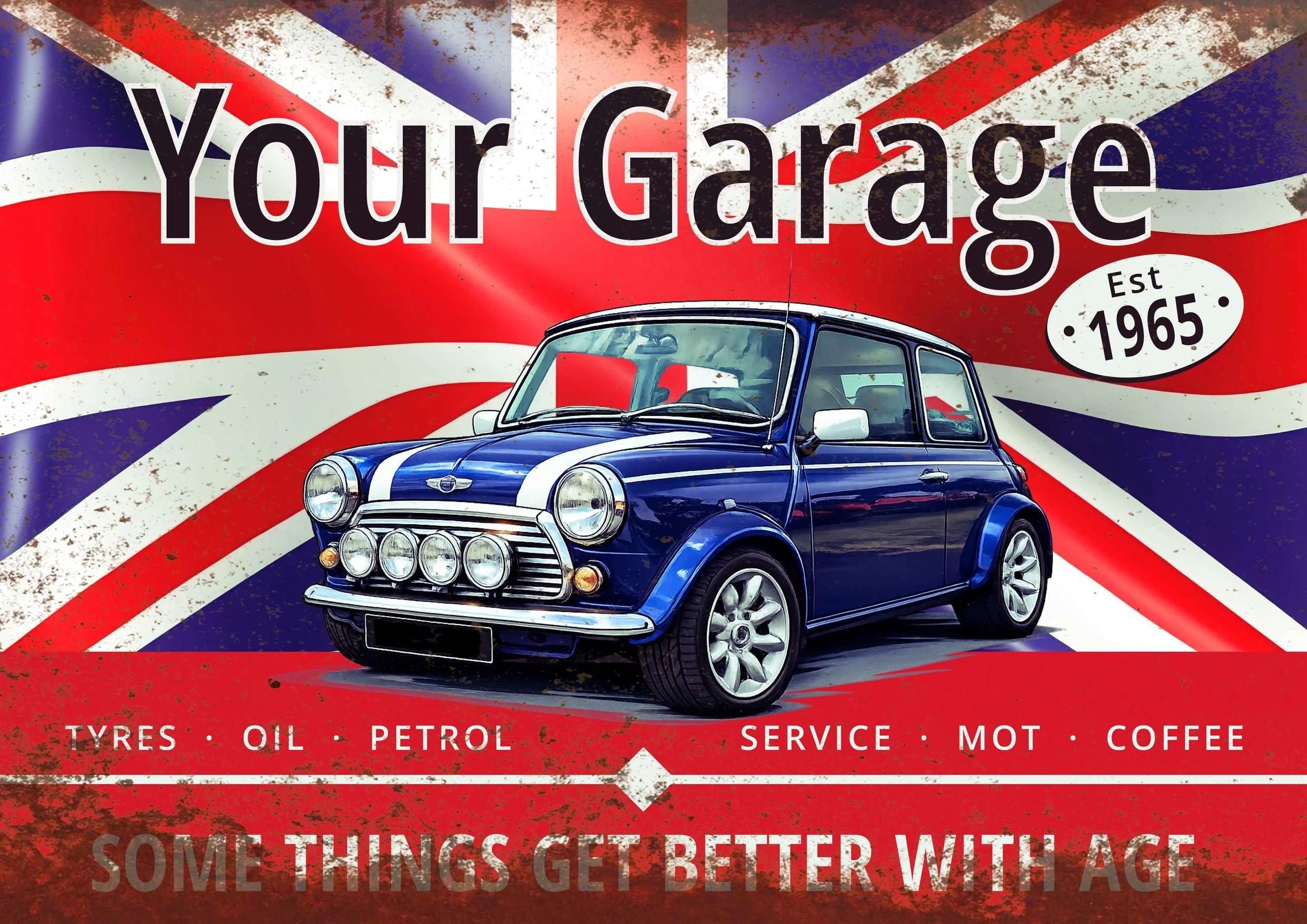 Each sign is printed using high-quality laminated UV-stable inks onto durable 3mm aluminium board, giving you a vibrant, long-lasting finish designed to look fantastic on your garage wall.