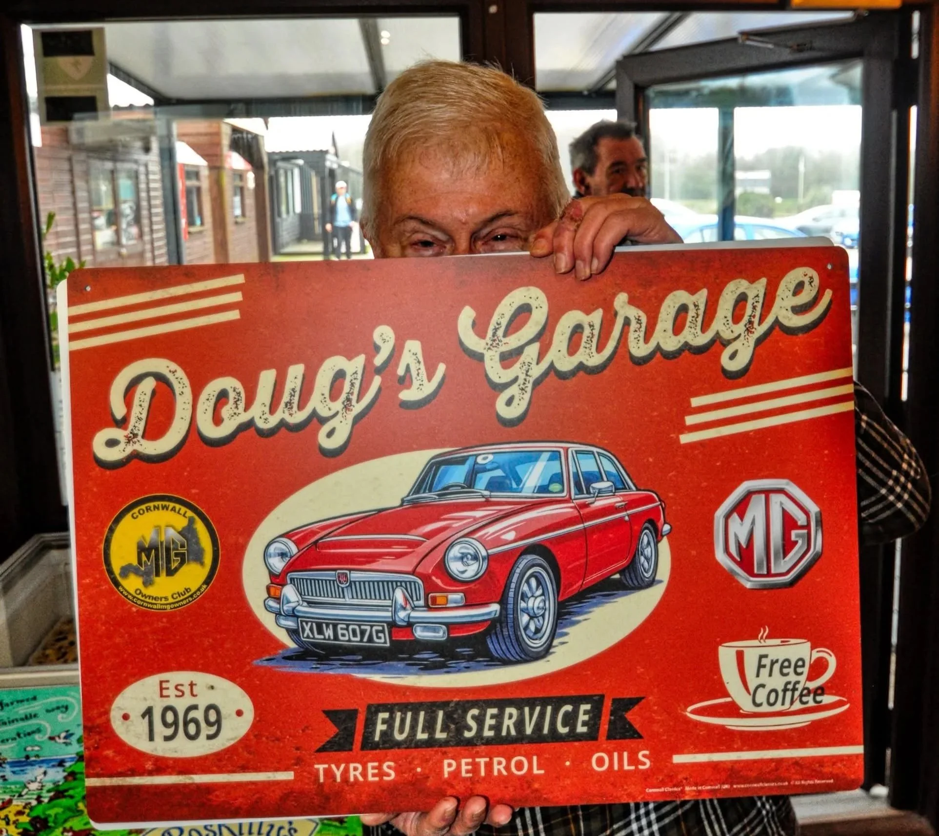 Photograph by Bob Burgess, Cornwall MG Owners Club showing Doug Boden’s A2 size sign